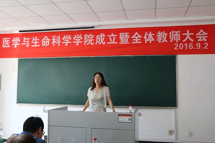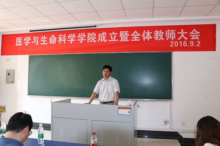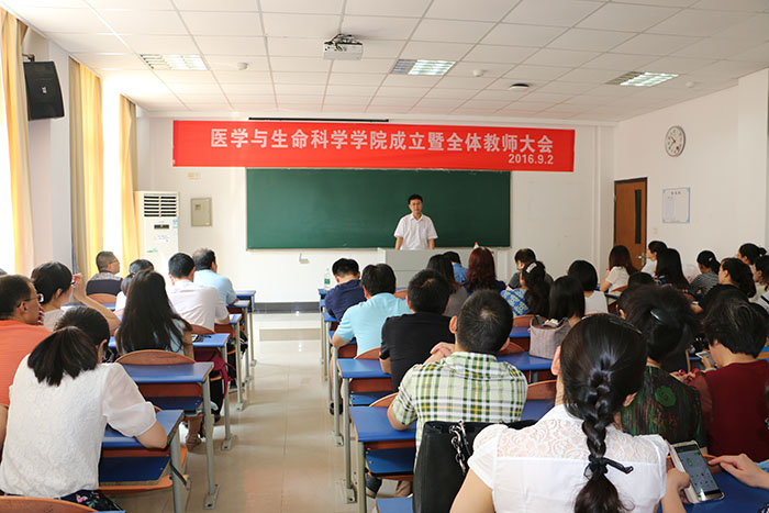 2016年9月2日william威廉中文官网医学与生命科学公司(简称生科院)成立暨全体教师大会在B8207教室隆重召开,这标志着公司成为国内首批通过教育部审批获得临床医学招生资格的中医类院校。生科院的成立为公司实现“中西医结合”的目标,切实提升中医药水平提供了一个良好的平台;为践行国家“继承好、发展好、利用好”中医药资源提供保障;为深入发掘中医药宝库中的精华,突出中医药的特色与优势,让中医药在“健康中国”的发展道路上发挥重要作用打下坚实基础。