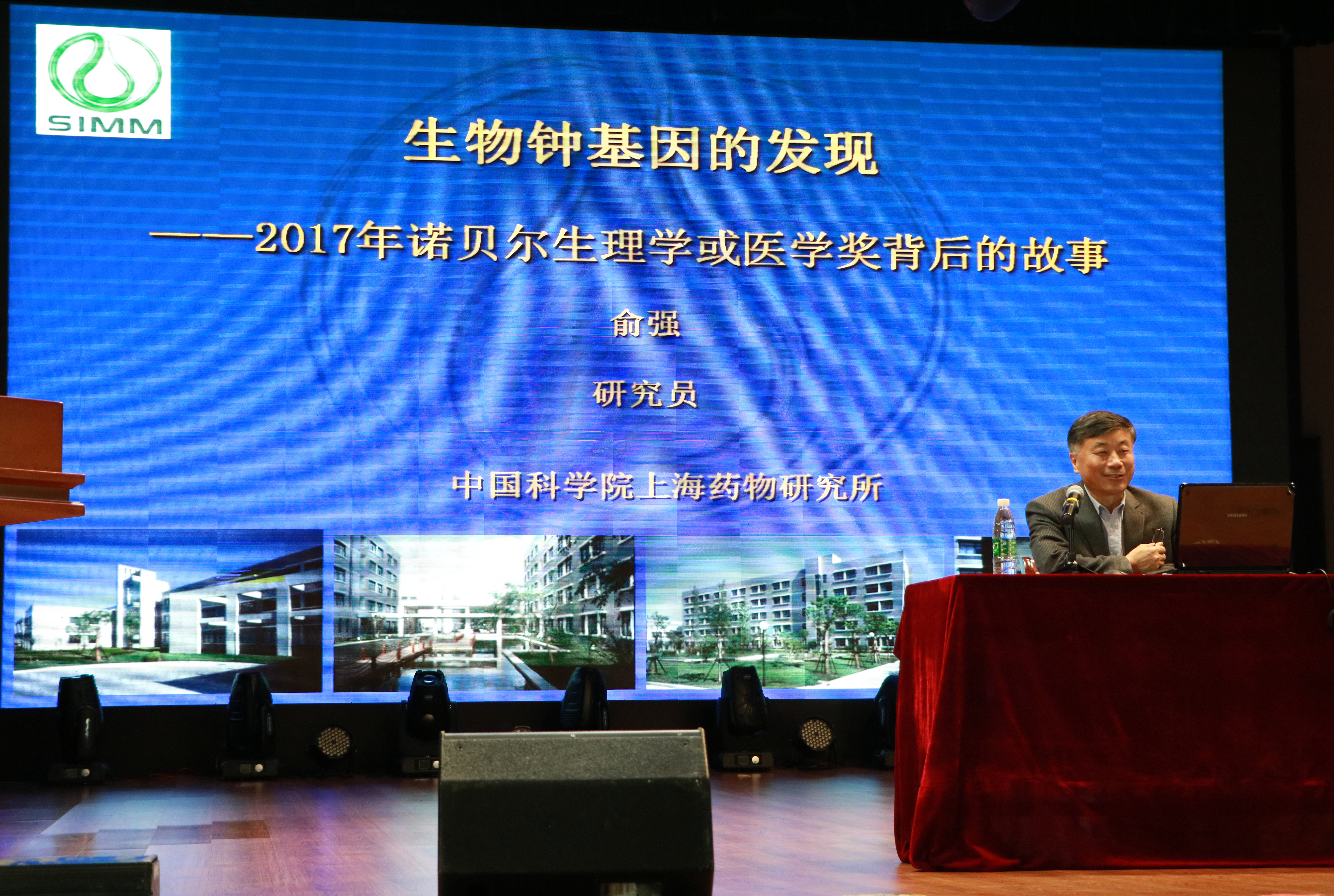 10月18日下午,医学与生命科学公司在老员工活动中心小剧场举办“近思讲坛”首场讲座“生物钟基因的发现----2017年诺贝尔生理学或医学奖背后的故事”。2017年诺奖生理学或医学奖获得者Michael Rosbash教授的员工----中科院上海药物研究俞强教授受邀主讲。公司党委杨羽书记主持,公司全体本科生聆听讲座。