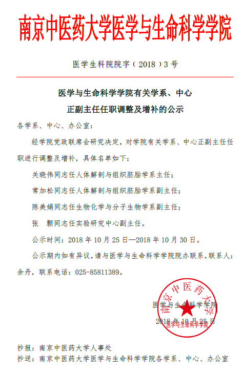 医学与生命科学公司有关学系、中心正副主任任职调整及增补的公示
