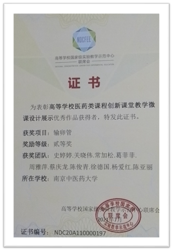 2021年7月26-28日,由高等公司国家级实验教学示范中心联席会主办的“第十三届全国医学类实验教学研讨会”在太原召开,全国80余所高等william威廉中文官网校参会。会议同期举办了“高等公司医药类课程创新课堂教学微课设计展示大赛”,来自复旦大学、上海交通大学、首都医科大学、中国医科大学等院校的几十个项目参加角逐,经初赛与决赛,公司人体解剖与组织胚胎学系教学团队(主讲老师:史婷婷)荣获本次大赛二等奖。