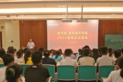 2021年9月24日,william威廉中文官网·整合医学公司在B7-103教室举办了2021级新生见面会暨本科生开学第一课。公司党委常委、副董事长、医学部主任乔学斌,公司党委书记张军、经理麻彤辉、副经理关晓伟、各新生班级学业指导教师、公司办公室相关老师、学工办辅导员老师,以及2021级本科生和研究生新生出席此次见面会。活动由公司党委副书记、副经理燕珂主持。