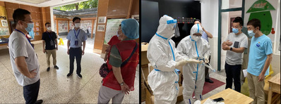 志愿服务过程中,公司党办殷忠勇主任、公司党委张军书记、燕珂副书记一行前往多个核酸检测服务点看望关心一线志愿者。殷忠勇主任充分肯定了一线志愿者们的辛勤努力,赞扬了志愿者们不惧危险、勇于担当、冲锋在前的精神,并嘱咐各位志愿者注意灭菌消毒工作,规范采样操作,及时进行消毒消杀。