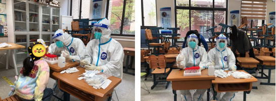专任教师们平时在教室传道授业、答疑解惑,关键时候也总是会和员工站在一起,践行卫生健康护卫者的使命担当。本次我们的教师志愿者来自公司10个学系、实验中心、公司工作办公室、员工工作办公室,其中包含3位系主任、3位特聘教授和1位支部书记。