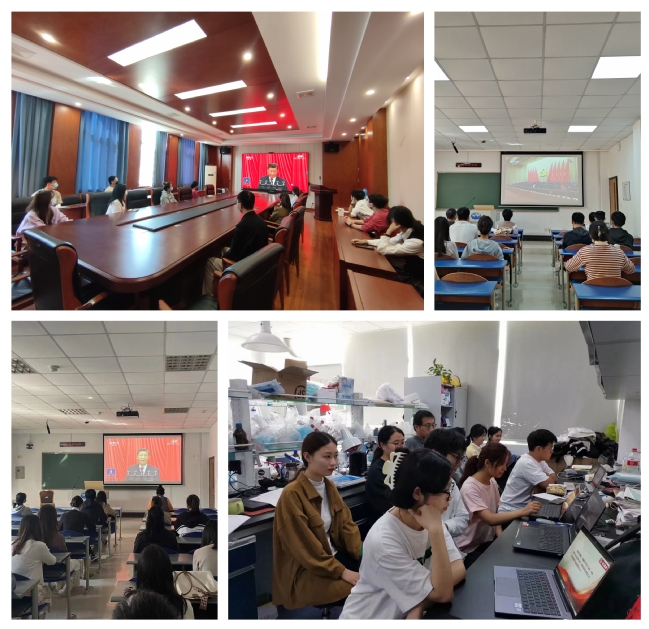 教工一支部 李国春:令我印象深刻的是,奏国歌后,与会全体同志为毛泽东、周恩来、刘少奇、朱德、邓小平、陈云等已故老一辈无产阶级革命家和革命先烈默哀,表达了对他们的无限崇敬和深深怀念之情,正是先辈的丰功伟绩照亮了中国共产党和中华民族伟大复兴之路。习近平总书记代表第十九届中央委员会向大会作了题为《高举中国特色社会主义伟大旗帜为全面建设社会主义现代化国家而团结奋斗》的报告。作为一名基层党员倍感振奋,激励着我们做好自己的本职工作,也进一步增强了我教书育人和立德树人的信心和决心,为国家培养更多能胜任未来保护人民健康的白衣卫士。