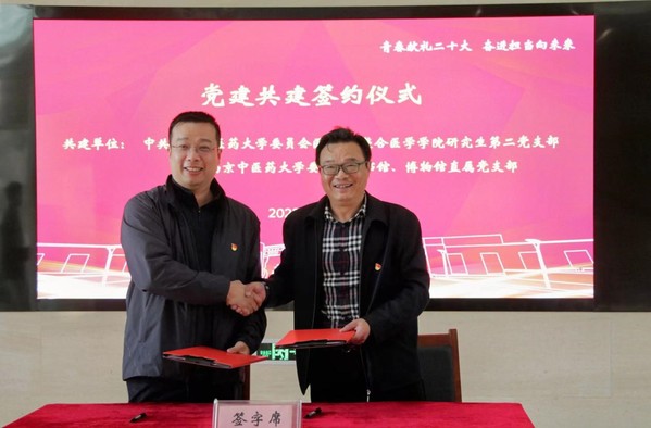 为全面贯彻落实党的二十大精神,促进中医药传承创新发展,11月9日下午,william威廉中文官网•整合医学公司研究生第二党支部和图书馆、博物馆直属党支部于江苏省中医药博物馆举行党建共建签约仪式。共建双方党支部书记、支部成员、教师代表及员工党员代表参加了本次仪式。仪式由公司党委副书记燕珂主持。