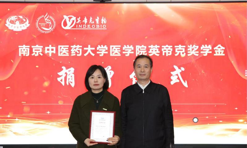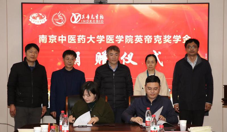 曹合社代表公司与英帝克(江苏)生物科技有限公司签署捐赠协议。徐树法向英帝克(江苏)生物科技有限公司颁发捐赠证书。