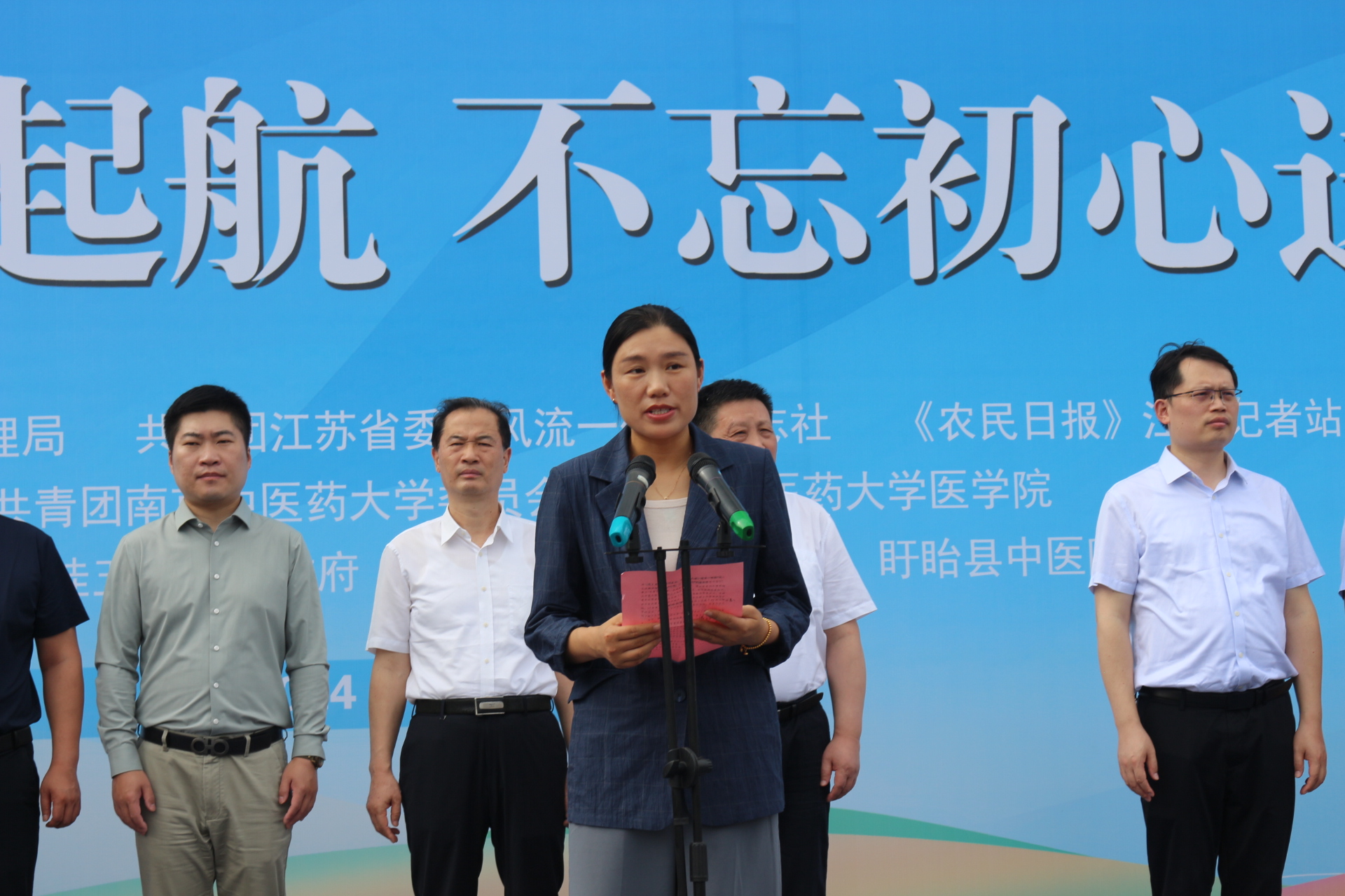 盱眙县副县长、县红十字会会长陈俊在启动仪式上致欢迎辞。她表示,盱眙县政府一直高度重视卫生健康事业发展,始终将人民健康放在优先发展的战略地位。此次“农民健康百村工程”活动走进盱眙,将高水平中医药服务送到百姓家门口,助力提升基层医疗服务能力,切实为盱眙农民群众健康保驾护航。盱眙县将以此次活动为契机,继续加强与各领域单位的交流与合作,助推健康盱眙建设,造福民生福祉。
