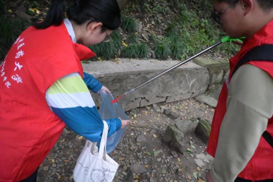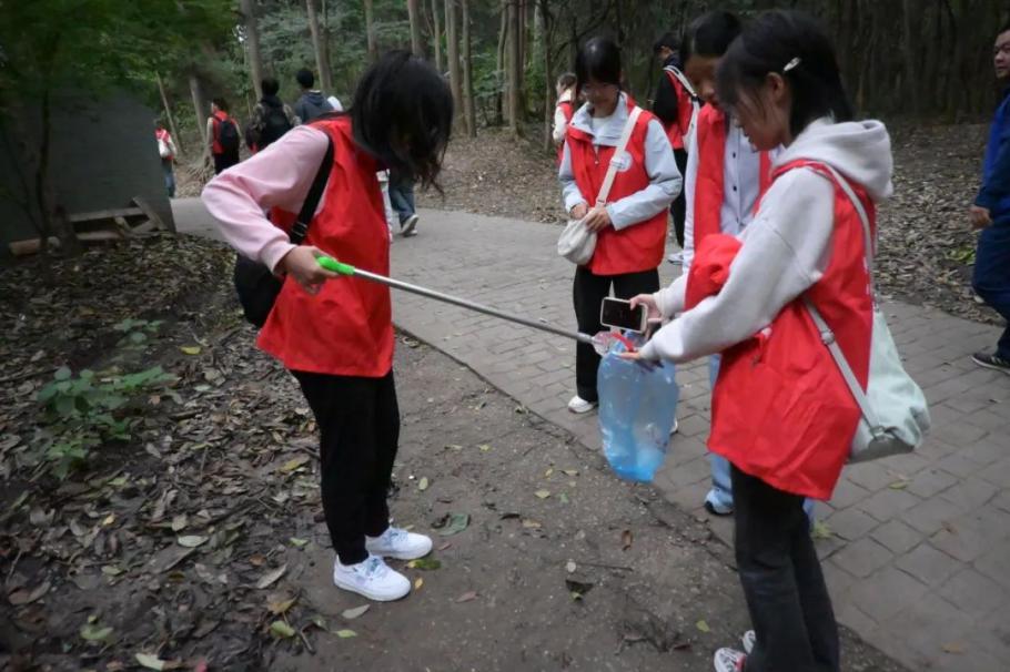 午后时分,志愿者们精神抖擞地集结完毕。他们身着统一的红马甲,怀着满腔的热情与坚定的信念,开启了紫金山的环保之旅。他们手持夹子和垃圾袋,目光专注而锐利,不放过任何一个角落里的垃圾。他们每捡起的一片纸屑、一张塑料纸、一个矿泉水瓶都是他们对大自然的呵护。