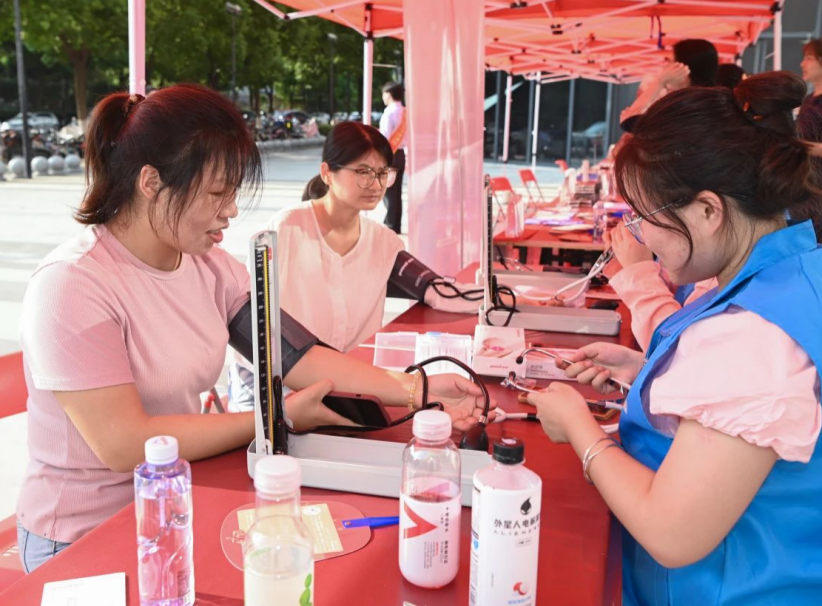 活动吸引了众多外卖小哥、服务员、办事员、社区居民等群众前来参与。员工志愿者们细致专业地为大家测量血压,细心询问其身体健康状况,普及防治高血压的健康养生知识。现场不少老人存在肌肉酸痛等问题,员工志愿者耐心交流后针对性地提供推拿服务,获得了一众好评。