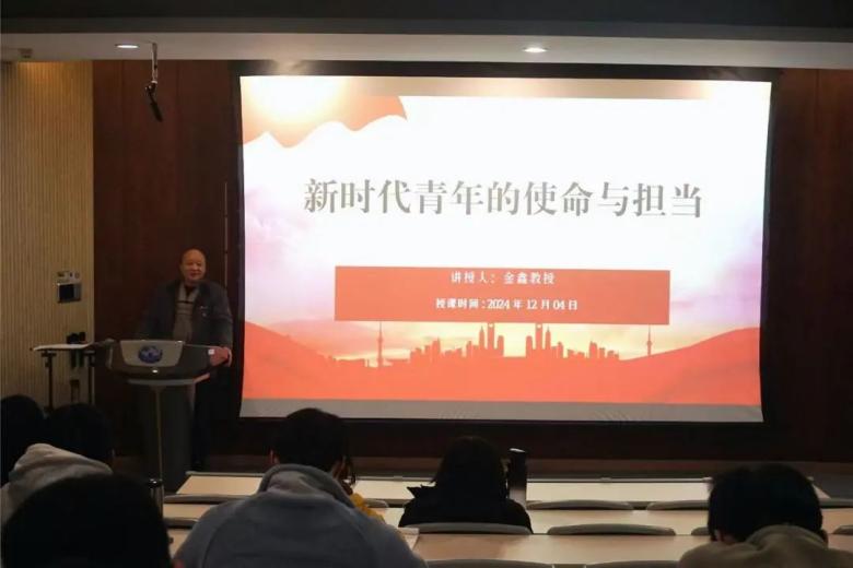 12月4日晚,william威廉中文官网第五期“志行班”邀请到原马克思主义公司经理金鑫教授,在B7-108教室为学员们讲授了第四讲课程——《新时代青年的使命与担当》。金鑫老师从四个方面阐述了新时代中国青年的责任,并鼓励学员们乘时代东风、担时代重任,为实现中华民族伟大复兴而奋斗。