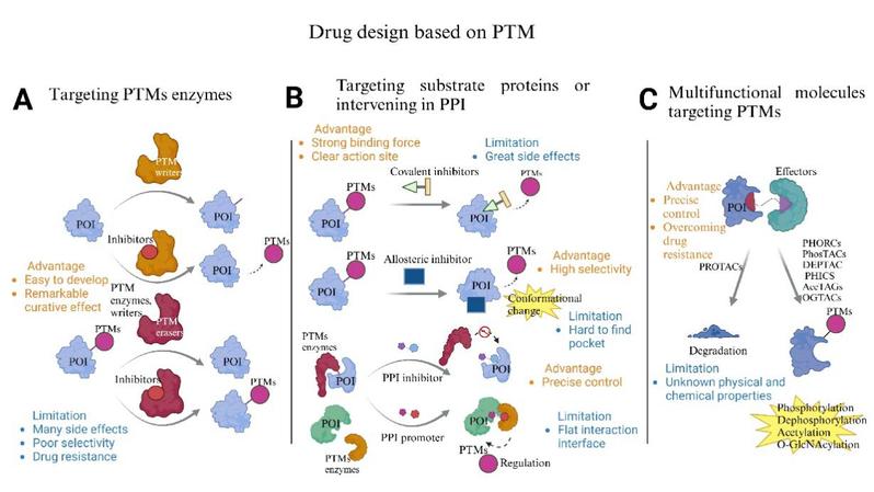 2024年11月29日在Pharmacology & Therapeutics发表的“Exploring the landscape of post-translational modification in drug discovery”综述了翻译后修饰(PTMs)在增加蛋白质的多样性、参与多种分子调控机制等方面的重要作用。激酶抑制剂、表观遗传药物和蛋白质水解靶向嵌合体靶向PTMs的药物,实现了对传统药物局限性的不断突破。然而,人们对PTMs的理解仍缺乏全面的框架体系,该综述系统性地提出了针对PTMs的药物设计策略,包括直接靶向PTMs过程中的酶、靶向修饰的底物蛋白、干预底物蛋白和PTMs酶相互作用和利用多功能分子调节修饰水平等,揭示了PTMs在药物发现及精准医疗中的重要性,为药物研发与治疗策略提供了崭新的视角。
