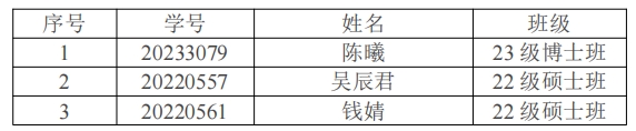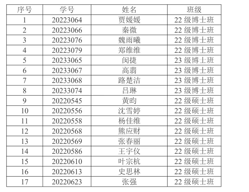 研究生“校级优秀研究生”“校级优秀研究生干部”拟推荐名单: