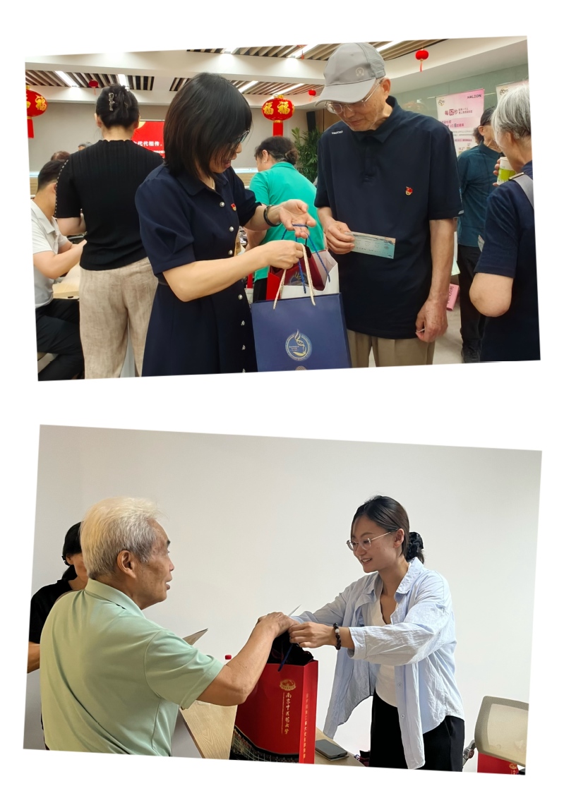 活动尾声,教工第六党支部特别为参与活动的老同志送上“中医药健康关怀礼包”,有通经活络,缓解肩颈疲劳的艾草养生锤、安神助眠的艾草枕、守护健康的按摩梳和夏季祛热的手工蒲扇等。本次活动不仅通过科学设计,将党课学习与义诊从简单的叠加升华为革命精神的传承与践行,打造有温度、有深度的主题党日活动,更是教工第六党支部探索“党建+社会服务”育人模式的积极实践,将革命精神转化为服务人民切实行动的生动实践。